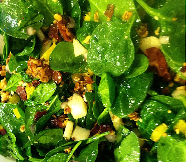 Spinach Salad with Pears, Bacon and Blue Cheese: This salad is a delicious hit every year. It the perfect fresh bite of fall. (can make everything ahead except the pears)