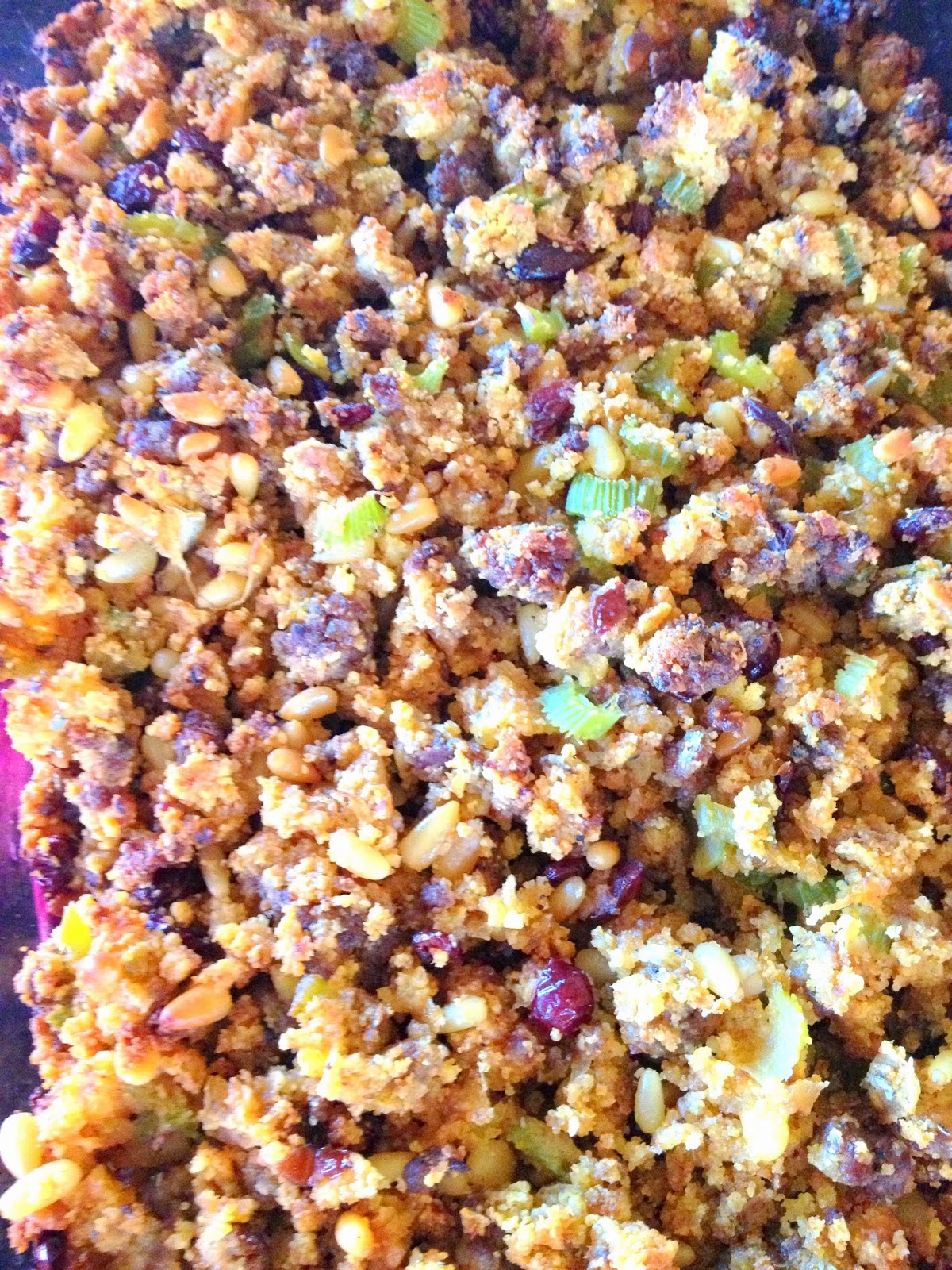 Cornbread, Toasted Pine Nut and Dried Cranberry Stuffing: I promise you will love this more than you can imagine. It is the favorite every year. (make ahead)