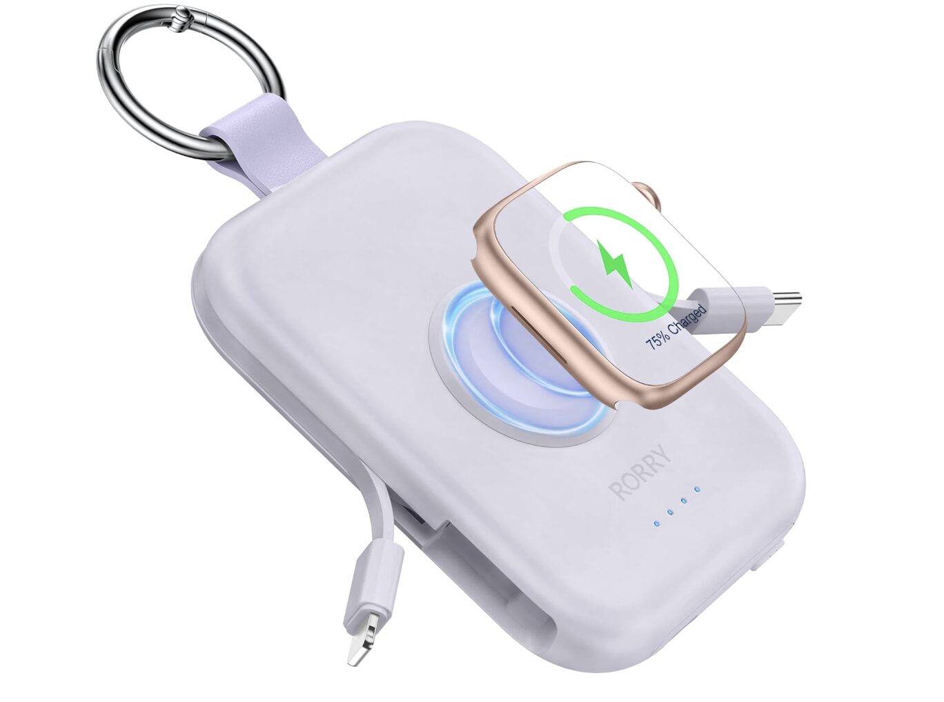 Built-in Cables, Travel Keychain Battery Pack for Apple Watch