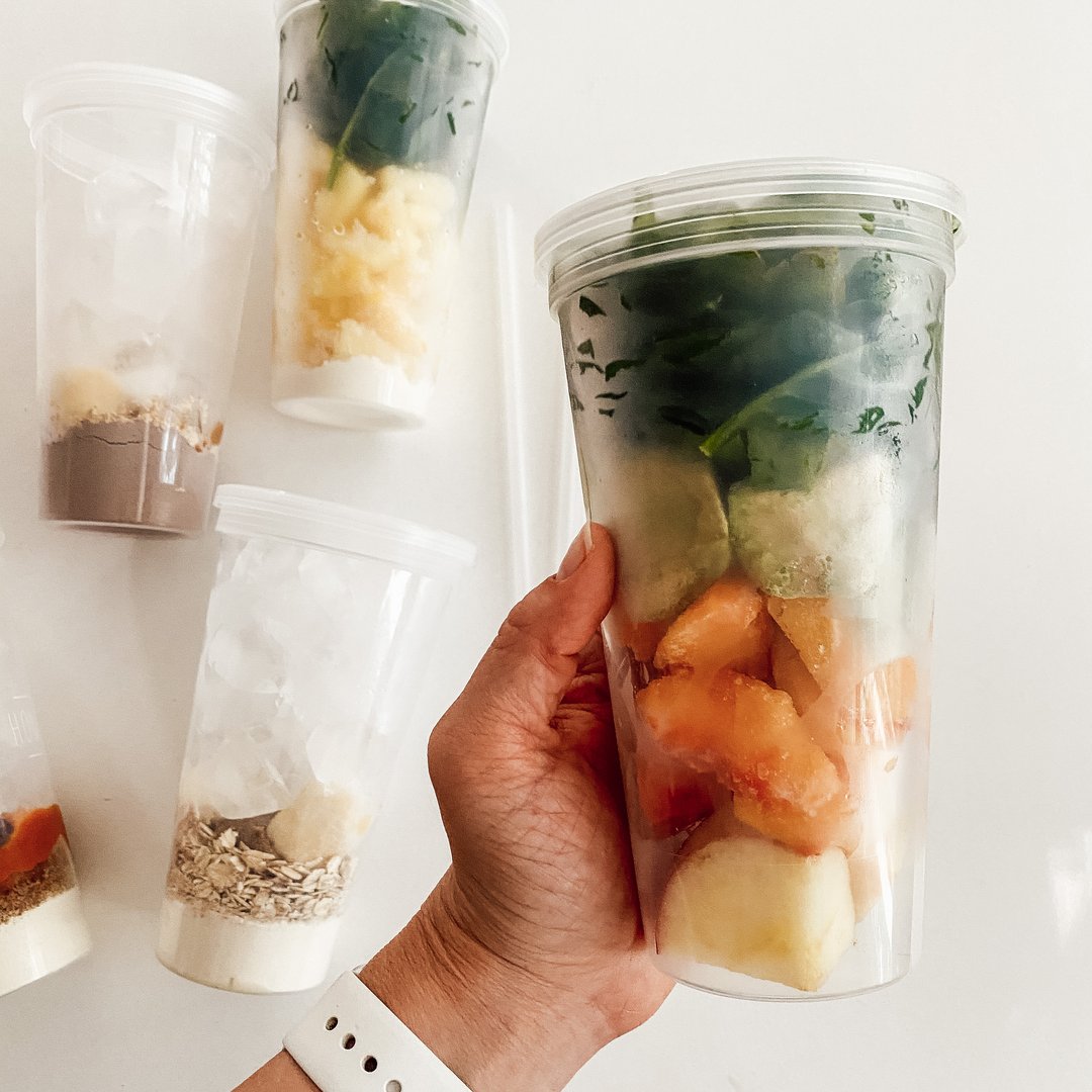 These reuseable smoothie cups are perfect for your favorite heath nut! place all the ingredients in each cup at the beginning of the week and throw them in the freezer. Dump it all in the blender and add your liquid then pour right back into the cup to enjoy. ($23 for 5 cups)