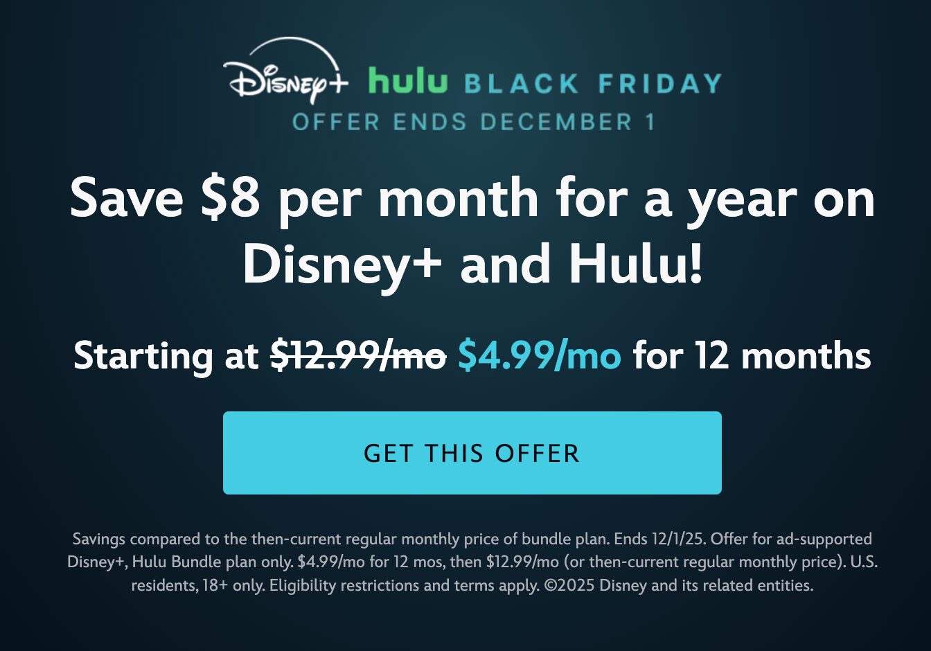 Disney+ and Hulu Deal for $4.99/ Month by Brooke Romney | Nov 26, 2025 | Uncategorized | 0 comments Disney+ and Hulu Deal for $4.99/ Month I wanted to share this rare deal! If you want to watch your favorite Christmas movies for less, you can get Disney and Hulu Plus for only $4.99 per month with this promotion. Yay for cozy winter nights! Submit a Comment Cancel replyYour email address will not be published. Required fields are marked * Recipe Rating Recipe Rating Comment * Name * Email * Website Δ
