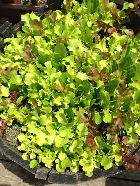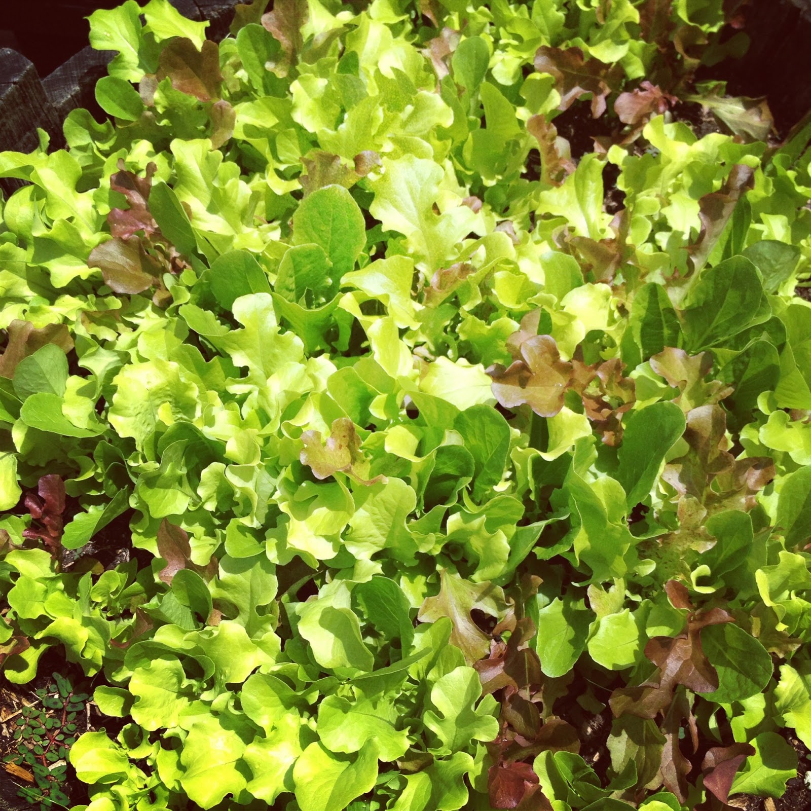 I got a packet of seeds from our local nursery ($1.29) for Micro Greens (a nice mix of lettuces). I placed some good soil in my large barrel and planted pretty tight rows with lots of little seeds about 1/2 inch down into the soil, then covered them up and pressed the soil on top. I was careful to make sure they were well watered (moist but not soggy) in the beginning and within two weeks I had a whole pot of Micro Greens, enough for a few huge salads. I snipped the ready leaves off and left about 1/2 inch toward the soil. Within another week, I had all the lettuce I needed for another salad. They are delicious and mild and they just keep growing! I have them in a pot on my deck to keep them from being eaten by critters, and they have done incredibly well. Even if you don’t have much space this is definitely something you could grow on a deck or small patio. Give it a try!