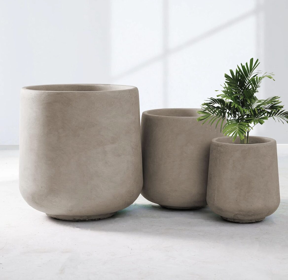 These planters are gorgeous, high quality and so affordable. I went with the “weathered concrete” color which is a little warmer and looks perfect on our porch but they come in all kinds of color options. Such a great price for three!