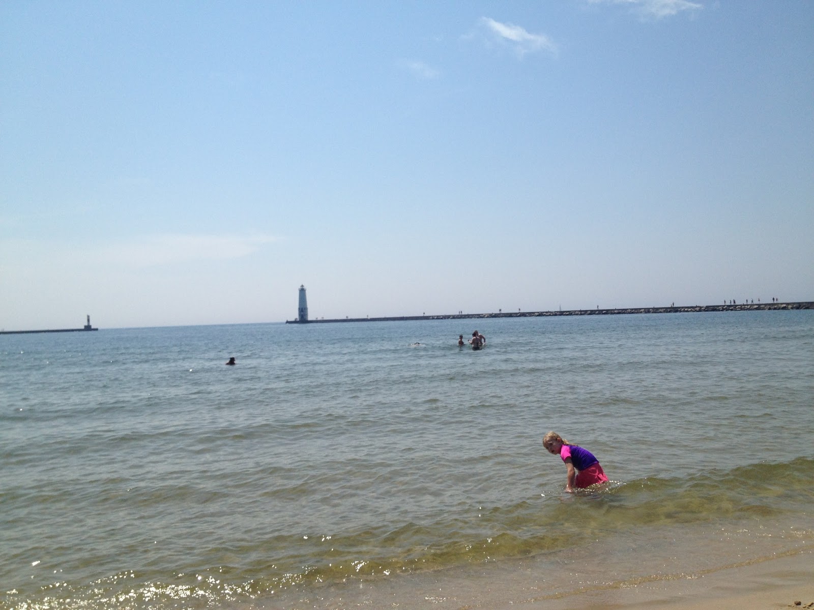 Play at the beach. If you are looking for more of a “play” beach, we loved our stop in Frankfort; a cute little town about 25 miles outside of Sleeping Bear. The water wasn’t nearly as blue or clear, but it was perfect for a family day. There were port-a-potties, swings, lots of beachfront, a dock, and cool wavy water to dip in with lots of fish keeping us company. We loved the cute little downtown that led to the beach too. One note, there is an awesome pizza place there we were dying to eat at, but the wait was 1.5 hours just to order a pizza. Call ahead!!