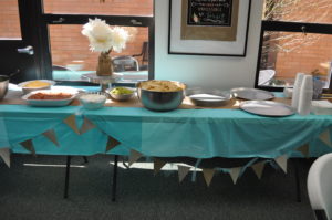FOOD: I am pretty sure that the way to a teacher’s heart is through food. Each day we provided something for them to enjoy and they were thrilled with the chance to kick back and relax during lunchtime without eating leftovers! My amazing friends decorated the room so beautifully in accordance with the theme at the beginning of the week (lots of brown paper packages tied up with string) and it stayed looking great all week long.