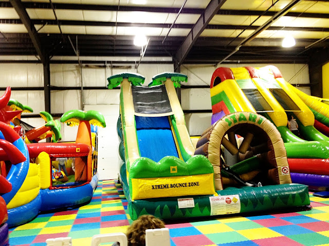 I almost hesitate writing this post because I feel like Xtreme Bounce Zone has been my little secret for a few years. It is a place with a bunch of inflatables but for some reason, I just really love it, and my kids (ages 1-10) can stay for hours. It is a great thing to do during Christmas break, a day off of school, in the middle of the summer, or with your toddler (best for ages 1-14. Really anyone can have a good time here).
